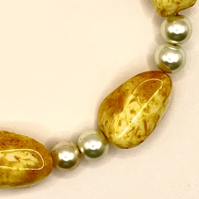 Bracelet composé de 6 perles calcite, et inter-perles perles résine nacrée.