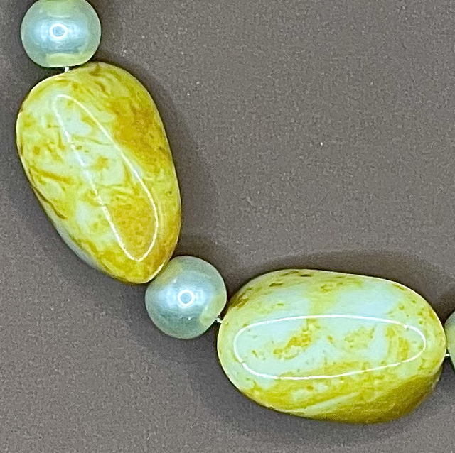 Bracelet composé de 6 perles calcite, et inter-perles perles résine nacrée.