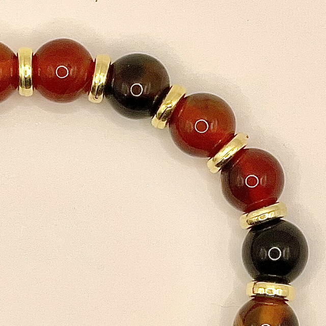 Bracelet perles agate rouge et inter-perles dorées.