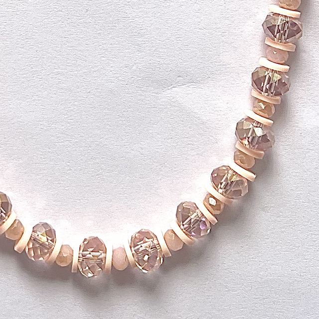 Collier perles en verre à facettes ton rose. Petites et plus grosses perles à facettes.