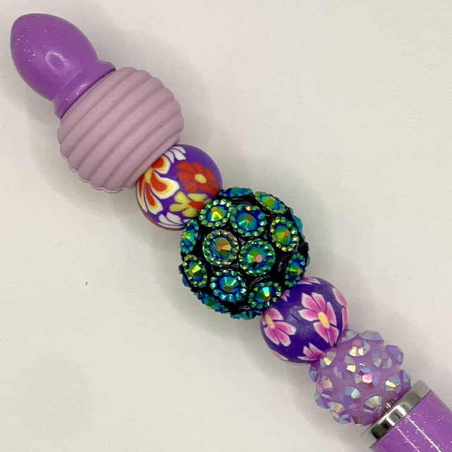 S60 - Stylo à perles ton violet gros strass