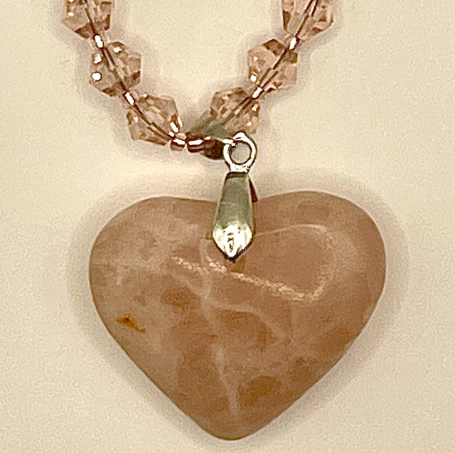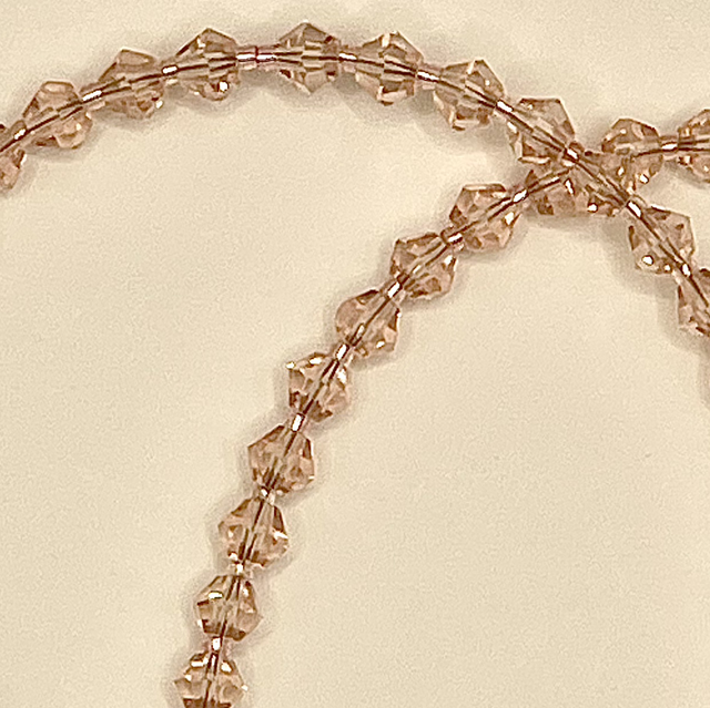 Collier perles en verre forme toupie à facettes. Pendentif quartz fraise.