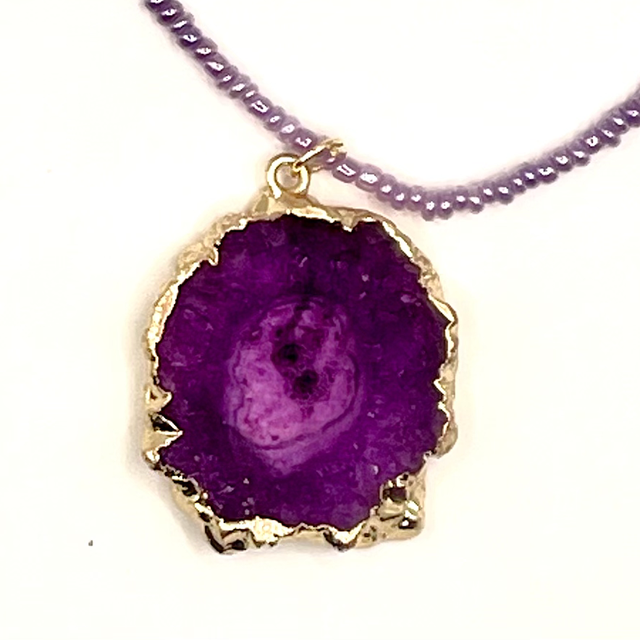 C86 - Collier perles de rocaille pendentif agate teintée violette