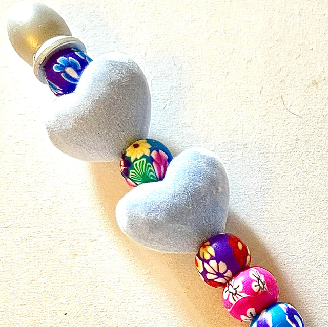 S30 - Stylo à perles cœurs bleus